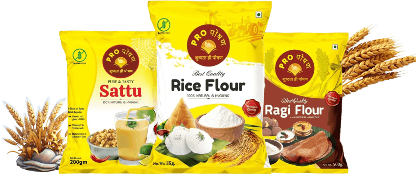 At Proposhan, quality is the heart of everything we do. We source the finest millet, rice, and pulses to create various flours, sattu, mixes and drinks powder that retain their natural purity and freshness. Every batch undergoes rigorous quality checks to ensure it meets the highest standards. Unlike mass-produced alternatives, our products are free from harmful chemicals, preservatives, and artificial additives. We follow strict hygiene protocols at every stage, from sourcing to packaging, ensuring that your kitchen receives only the best. By maintaining traditional milling methods, we preserve the natural taste, texture, and nutritional value of grains. Our goal is simple: to provide food that is pure, wholesome, and full of goodness. Whether it’s soft, fluffy rotis from our flours, crispy dosas made with our dosa mix, or a refreshing glass of sattu sharbat, we ensure that every ingredient enhances your cooking. With Proposhan, every meal becomes a celebration of quality and taste.